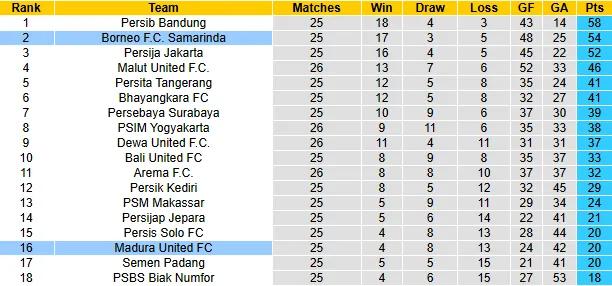 Madura United đang trải qua một mùa giải thảm họa khi đứng ở vị trí thứ 16 với vỏn vẹn 20 điểm sau 25 trận. Phong độ gần đây của đội bóng đảo Madura là vô cùng báo động với chuỗi 10 trận liên tiếp không biết mùi chiến thắng (thua 7, hoà 3). Madura United tỏ ra yếu kém nơi hàng thủ khi để thủng lưới trung bình 1.68 bàn/trận. Việc thiếu vắng trung vệ trụ cột J. Ambrosio Mendonça do chấn thương xương mặt khiến hệ thống phòng ngự của họ vốn đã mỏng manh nay còn trở nên dễ vỡ hơn.
