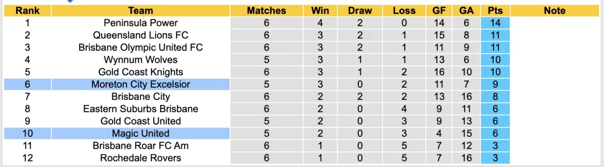 Magic United đang là lính mới tại QLD Premier League mùa này. Hai câu lạc bộ cũng chưa từng đối đầu trước đây. Nhưng với việc phải thi đấu ở hạng cao hơn, có lẽ đội chủ nhà đang Shock với những trận thua liên tiếp, với việc 2 vòng đấu gần nhất đều thắng, có lẽ Moreton City Excelsior sẽ có niềm vui trọn vẹn.