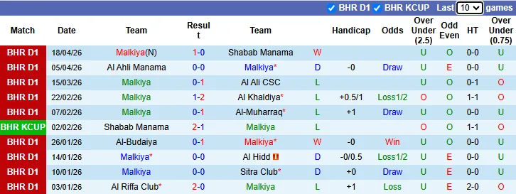 Malkiya đang trải qua một mùa giải 2025/26 cực kỳ thành công. Sau 18 vòng đấu, họ đang vững vàng ở vị trí thứ 4 trên bảng xếp hạng với 27 điểm. Phong độ gần đây của đội chủ nhà là rất ổn định khi vừa giành chiến thắng 1-0 trước Shabab Manama vào ngày 18/4 và bất bại 5/8 trận vừa qua ở giải VĐQG.