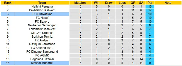 Mashal Muborak vừa có mạch 8 trận đấu không biết mùi thắng lợi tại giải VĐQG và trong đó, họ toàn thua cả 5 trận đấu mùa này. Cần biết thêm, Mashal Muborak chỉ có được 3 trận hòa và thua tới 6 lần ở 9 trận đấu gần nhất đụng độ Bunyodkor. Bunyodkor toàn thắng 2 trận đấu mới đây tại giải VĐQG.