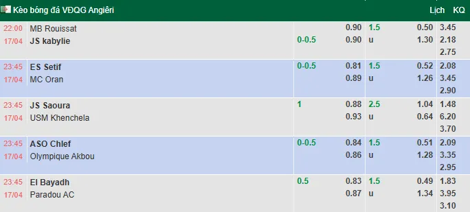 Nhận định bóng đá MB Rouisset vs JS Kabylie, 22h00 ngày 17/4/2026 tại giải VĐQG Algeria. Dự đoán, phân tích tỷ lệ kèo châu Âu, châu Á trận MB Rouisset đấu vs JS Kabylie từ các chuyên gia hàng đầu.