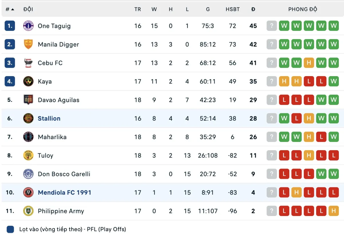 -Thống kê phong độ 10 trận đấu gần nhất của Stallion Laguna