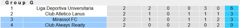 Lịch sử đối đầu Mirassol vs Club Always Ready