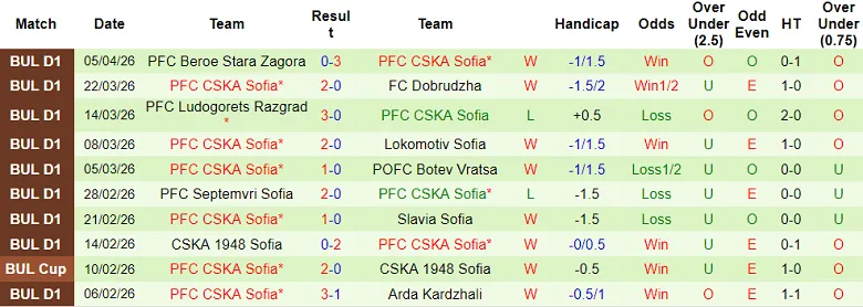 – Thống kê kết quả 10 trận gần nhất của CSKA Sofia