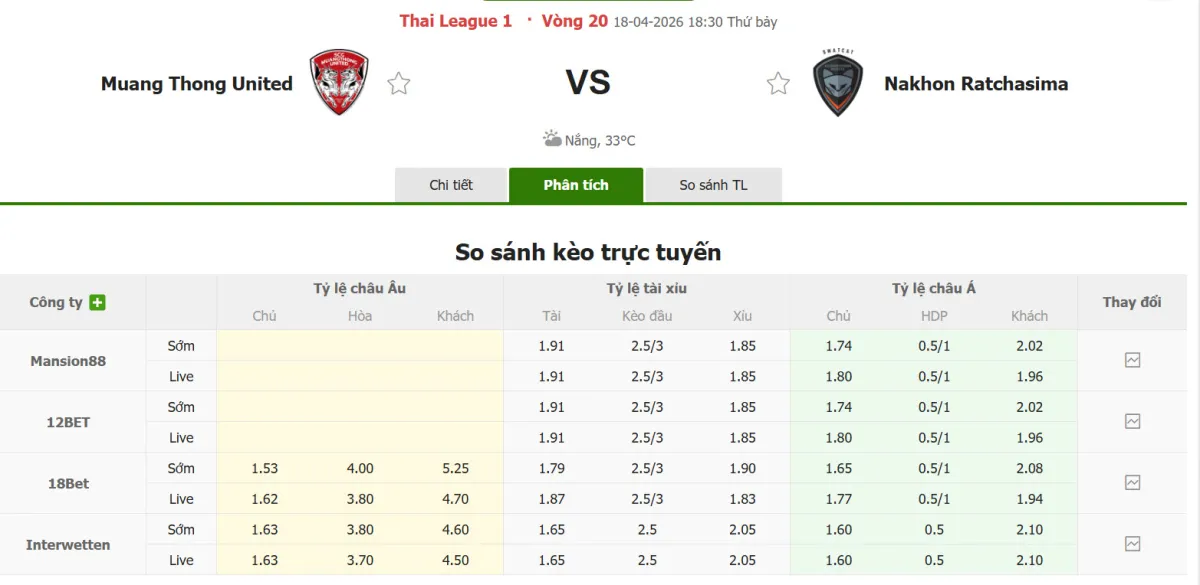 Nhận định soi kèo Muangthong United vs Nakhon Ratchasima, 18h30 ngày 18/4 tại VĐQG Thái Lan. Phân tích tỷ lệ kèo, dự đoán kết quả Muangthong United đấu với Nakhon Ratchasima từ tỷ lệ châu Âu, châu Á qua các chuyên gia hàng đầu.