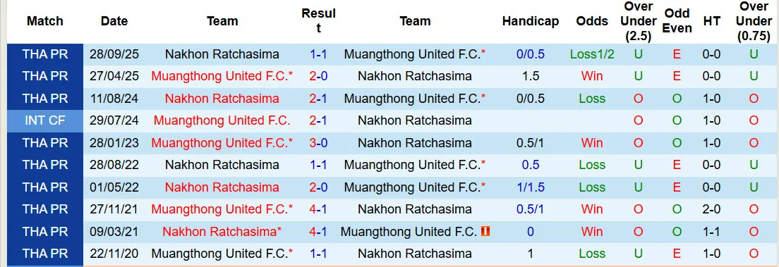 Muangthong United thắng kèo cả 3 trận đấu mới đây tiếp đón Nakhon Ratchasima trên sân nhà tại giải VĐQG Thái Lan. Muangthong United bất bại kèo tới 6 trong số 8 trận đấu gần nhất tại mọi đấu trường. Nakhon Ratchasima thua kèo tới 4/6 trận sân khách mới đây có cược chấp châu Á tại giải VĐQG Thái Lan.
