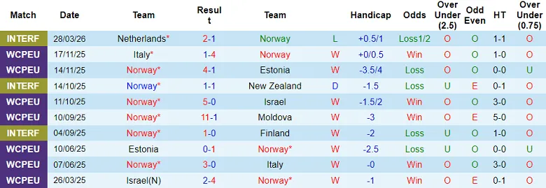 – Thống kê kết quả 10 trận gần nhất của Na Uy