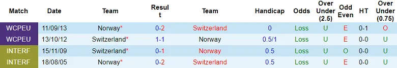 Thống kê phong độ, lịch sử đối đầu của Na Uy đấu vs Thụy Sĩ