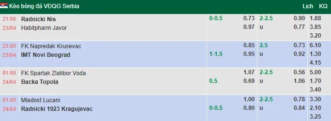 Nhận định bóng đá Napredak Krusevac vs IMT Belgrad, 23h00 ngày 23/4/2026 tại giải VĐQG Serbia. Dự đoán, phân tích tỷ lệ kèo châu Âu, châu Á trận Napredak đấu vs IMT Belgrad từ các chuyên gia hàng đầu.