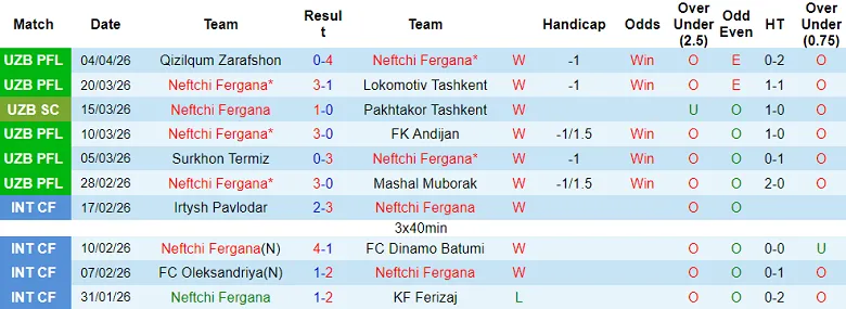 – Thống kê kết quả 10 trận gần nhất của Neftchi Fergana