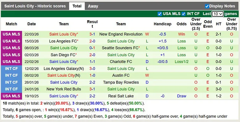 – Thống kê phong độ 10 trận đấu gần nhất của Saint Louis City