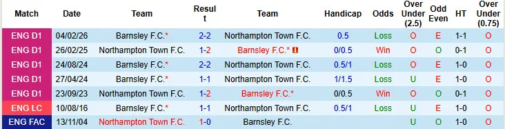 Thống kê phong độ, lịch sử đối đầu của Northampton vs Barnsley