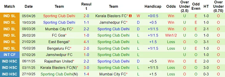 – Thống kê kết quả 10 trận gần nhất của SC Delhi