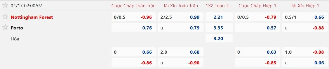 Kèo nhà cái Nottingham vs Porto