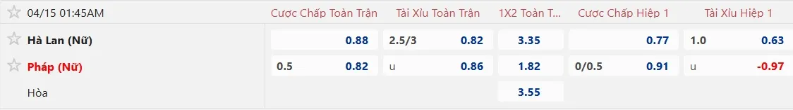 Kèo nhà cái Nữ Hà Lan vs Nữ Pháp