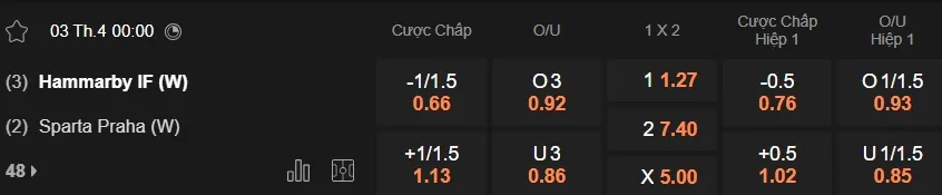 Phân tích tỷ lệ soi kèo Nữ Hammarby vs Nữ Sparta Praha