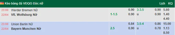 Nhận định bóng đá Nữ Union Berlin vs Nữ Bayern Munich, 23h00 ngày 22/4/2026 tại giải VĐQG Nữ Đức. Dự đoán, phân tích tỷ lệ kèo châu Âu, châu Á trận Nữ Union Berlin đấu vs Nữ Bayern Munich từ các chuyên gia hàng đầu.