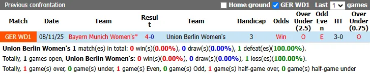 Thống kê phong độ, lịch sử đối đầu Nữ Union Berlin vs Nữ Bayern Munich