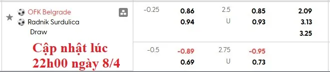 Mức chấp dành cho OFK Beograd ở trận đấu này chỉ có 1/4, đó là mức kèo không mấy sáng nước dành cho đội chủ nhà. Từ đầu mùa, họ thắng kèo có 12 trận, còn kém 3 so với đối phương. Khả năng Radnik Surdulica có điểm là rất cao.