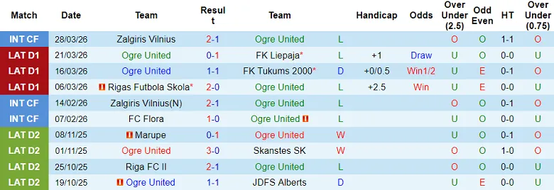 – Thống kê kết quả 10 trận gần nhất của Ogre United
