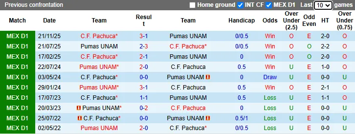 Pachuca đã đánh bại đối thủ 5 lần trong vòng 6 trận sân nhà gần đây. Và như đã thông tin ở trên, Pumas UNAM toàn thua 3 lần gần nhất chạm trán Pachuca.