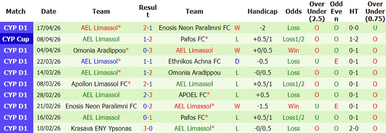 – Thống kê kết quả 10 trận gần nhất của AEL Limassol