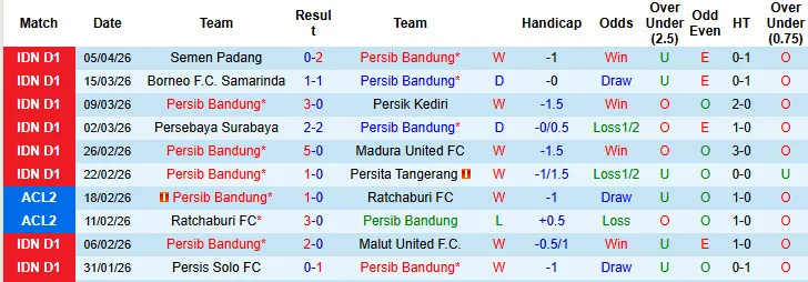 Persib Bandung thắng 3 trong số 4 trận đấu mới đây đụng độ Bali United. Persib Bandung toàn thắng cả 13 trận sân nhà tại giải VĐQG Indonesia 2025/26. Bali United là tập thể thất thường khi thắng có 2 lần ở 9 trận đấu mới nhất.