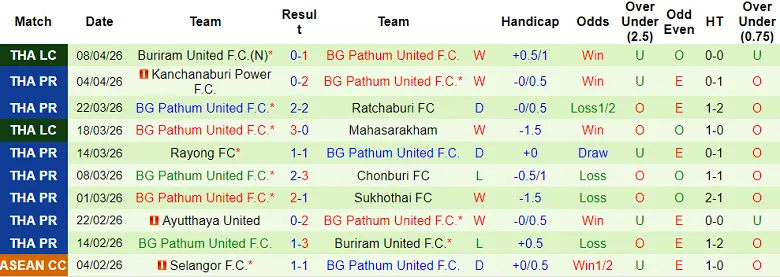 – Thống kê kết quả 10 trận gần nhất của BG Pathum United