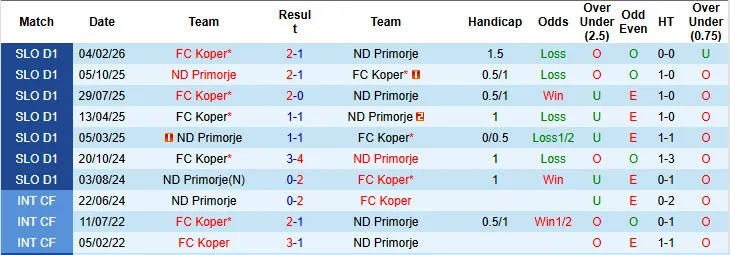 Primorje bất bại tới 4/6 trận đấu đối đầu chính thức vừa rồi trước Koper. Primorje thắng 3 trong số 5 trận sân nhà mới đây tại giải VĐQG và tự tin có điểm ở trận sân nhà đêm nay. Koper bất bại 5/6 trận đấu vừa rồi tại giải VĐQG và trong đó có 3 trận hòa.