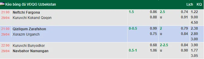 Nhận định bóng đá Qizilqum Zarafshon vs Xorazm Urganch, 21h00 ngày 29/4/2026 tại giải VĐQG Uzbekistan. Dự đoán, phân tích tỷ lệ kèo châu Âu, châu Á trận Qizilqum Zarafshon đấu vs Xorazm Urganch từ các chuyên gia hàng đầu.