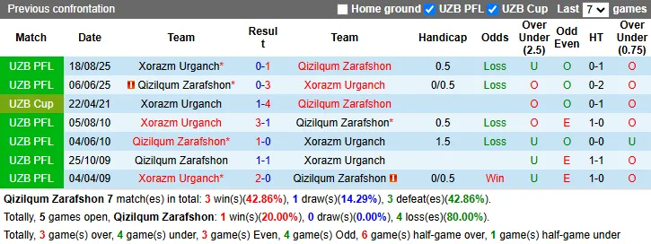 Thống kê phong độ, lịch sử đối đầu Qizilqum Zarafshon vs Xorazm Urganch