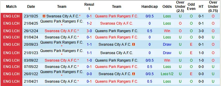 Queens Park Rangers chỉ thắng kèo có 2 lần ở 7 trận đấu mới đây đụng độ Swansea. Queens Park Rangers để thua kèo 2 lượt trận gần nhất. Swansea thắng kèo tới 3 trong số 4 trận đấu mới đây tại giải hạng Nhất Anh.