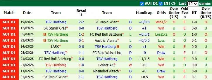 Thống kê phong độ 10 trận gần nhất của TSV Hartberg