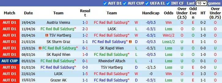 Thống kê phong độ 10 trận gần nhất của Red Bull Salzburg