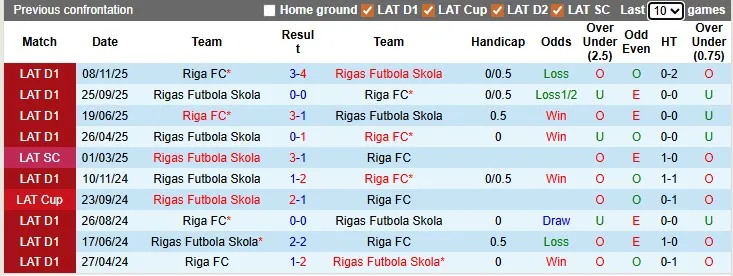 Có đến 7/10 trận đối đầu vừa qua giữa hai đội đều kết thúc với từ 3 bàn trở lên được ghi. Ngoài ra, toàn bộ 8 trận của Riga cũng đều nổ tài (38 bàn sau 8 trận, trung bình gần 5 bàn/trận). Khả năng nổ tài trận này rất cao.