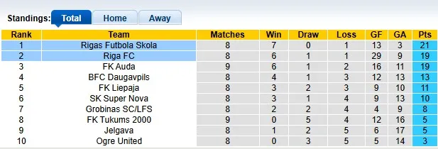 Ở vòng đấu này, thử thách dành choRigas Futbola cũng không hề nhỏ khi đó là Riga, đội cũng có phong độ cực sung. Nếu như Rigas Futbola đứng đầu bảng với 21 điểm sau 8 vòng, thì Riga chỉ kém 2 điểm, xếp ngay sau.