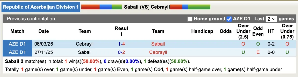 Thống kê phong độ, lịch sử đối đầu của Sabail với Cebrayil