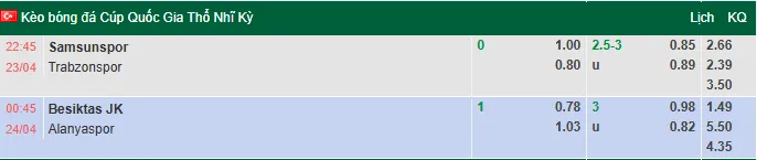 Dự đoán tỷ lệ bóng đá, soi kèo Samsunspor vs Trabzonspor