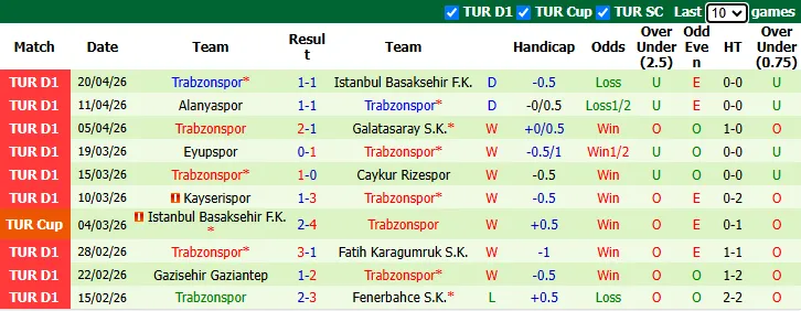 Thống kê phong độ 10 trận gần nhất của Trabzonspor