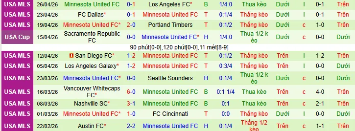 + Cả 7 trận gần đây của Minnesota cũng có 3 bàn thắng trở xuống, trong đó 5 trận có nhiều nhất 2 bàn.