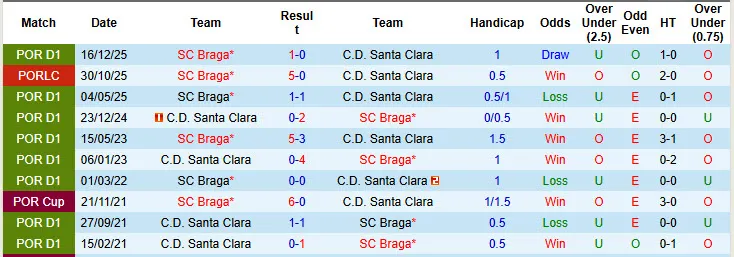 Lịch sử đối đầu Santa Clara vs Braga