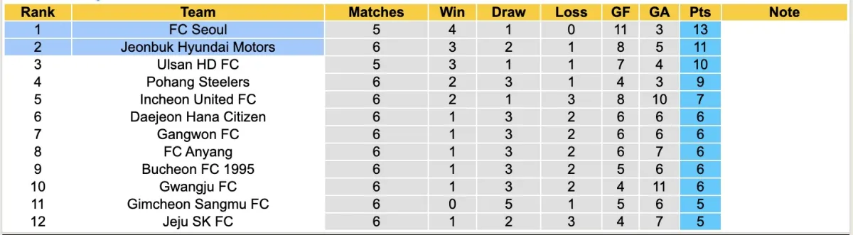 Thống kê phong độ, lịch sử đối đầu của Seoul với Jeonbuk Hyundai Motors