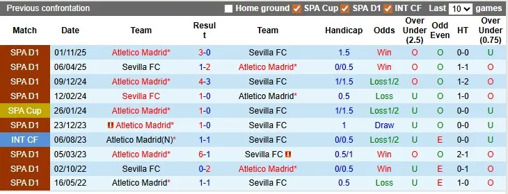 Thống kê phong độ, lịch sử đối đầu của Sevilla đấu vs Atletico Madrid