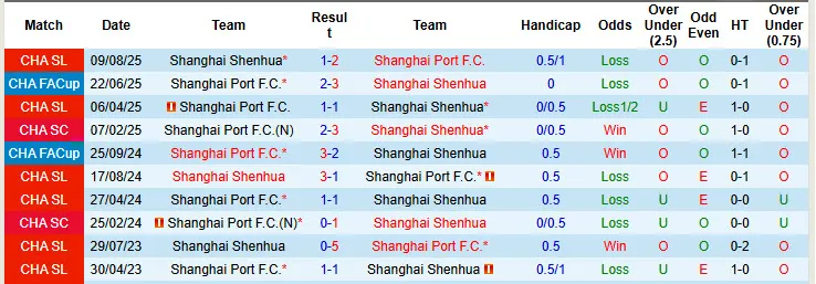 Thống kê phong độ, lịch sử đối đầu của Shanghai Shenhua vs Shanghai Port