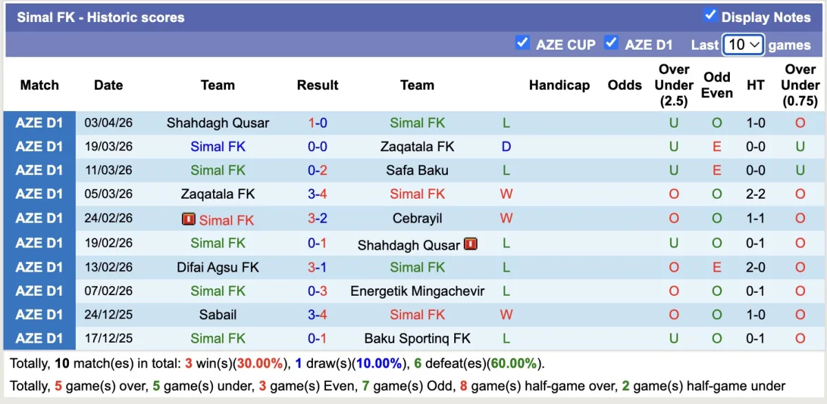 -Thống kê phong độ 10 trận đấu gần nhất của Simal