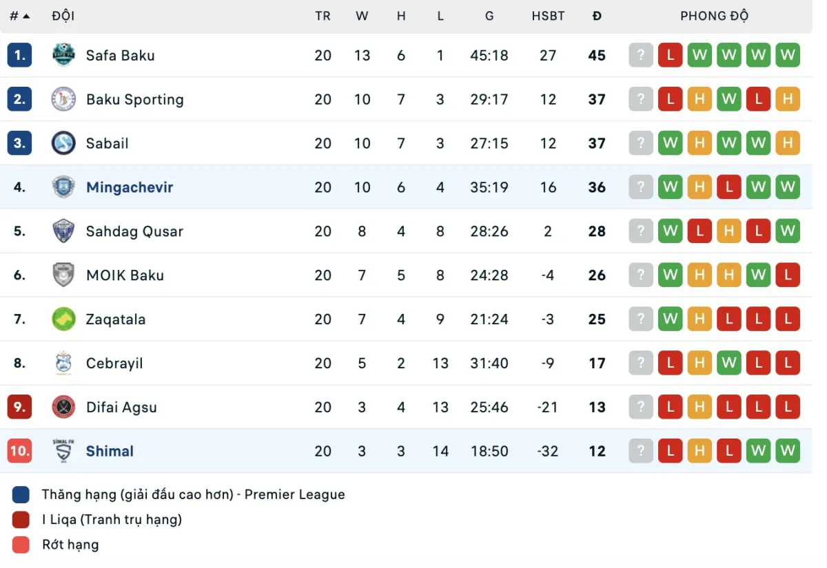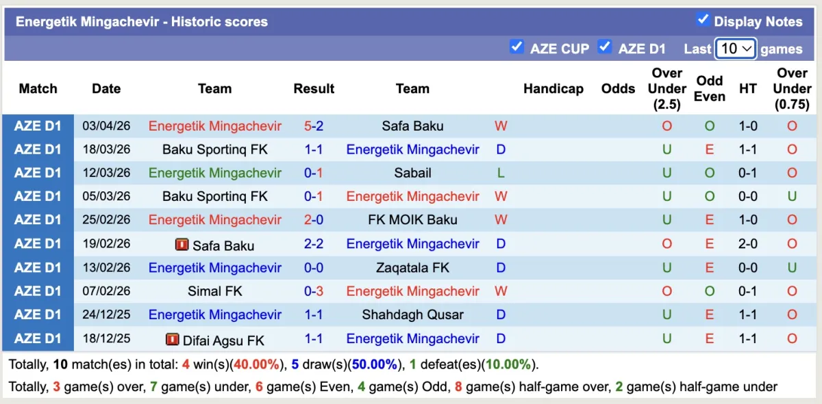 -Thống kê phong độ 10 trận đấu gần nhất của Energetik Mingachevir