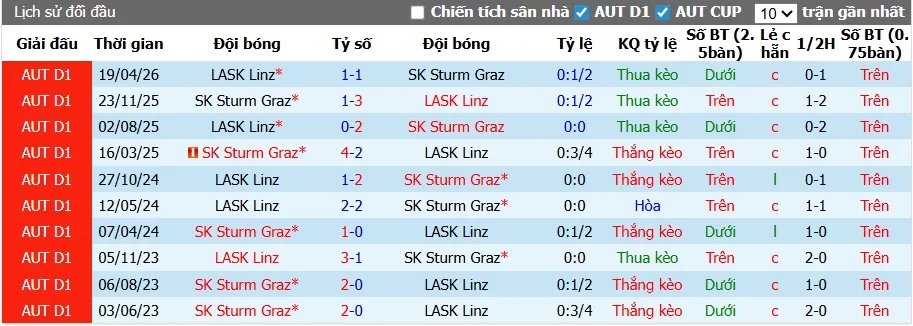 Lịch sử đối đầu đang cho thấy sự lấn lướt của Sturm Graz trước LASK, khi họ thắng 4, hòa 2 và chỉ nhận 1 thất bại ở 7 trận đấu gần nhất. Trước một LASK chỉ thắng 1/5 trận sân khách gần đây, các cầu thủ chủ nhà có cơ hội tìm kiếm chiến thắng để củng cố vị trí dẫn đầu trên BXH.