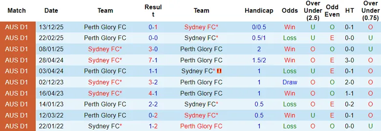 Sydney FC thắng toàn bộ 4 lần tiếp đón Perth Glory thuộc khuôn khổ A.League kể từ tháng 4/2023. Khả năng cao Syney FC lại giành 3 điểm khi tái đấu Perth Glory vào thứ Bảy (18/4).