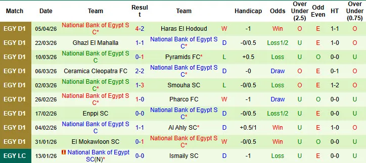 Thống kê phong độ 10 trận đấu gần nhất của National Bank of Egypt