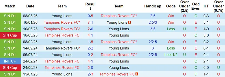 Tampines Rovers thắng toàn bộ 6 trận sân nhà gần đây thuộc khuôn khổ Singapore Premier League. Sẽ không bất ngờ nếu Tampines Rovers biến Young Lions thành ‘nạn nhân’ tiếp theo.